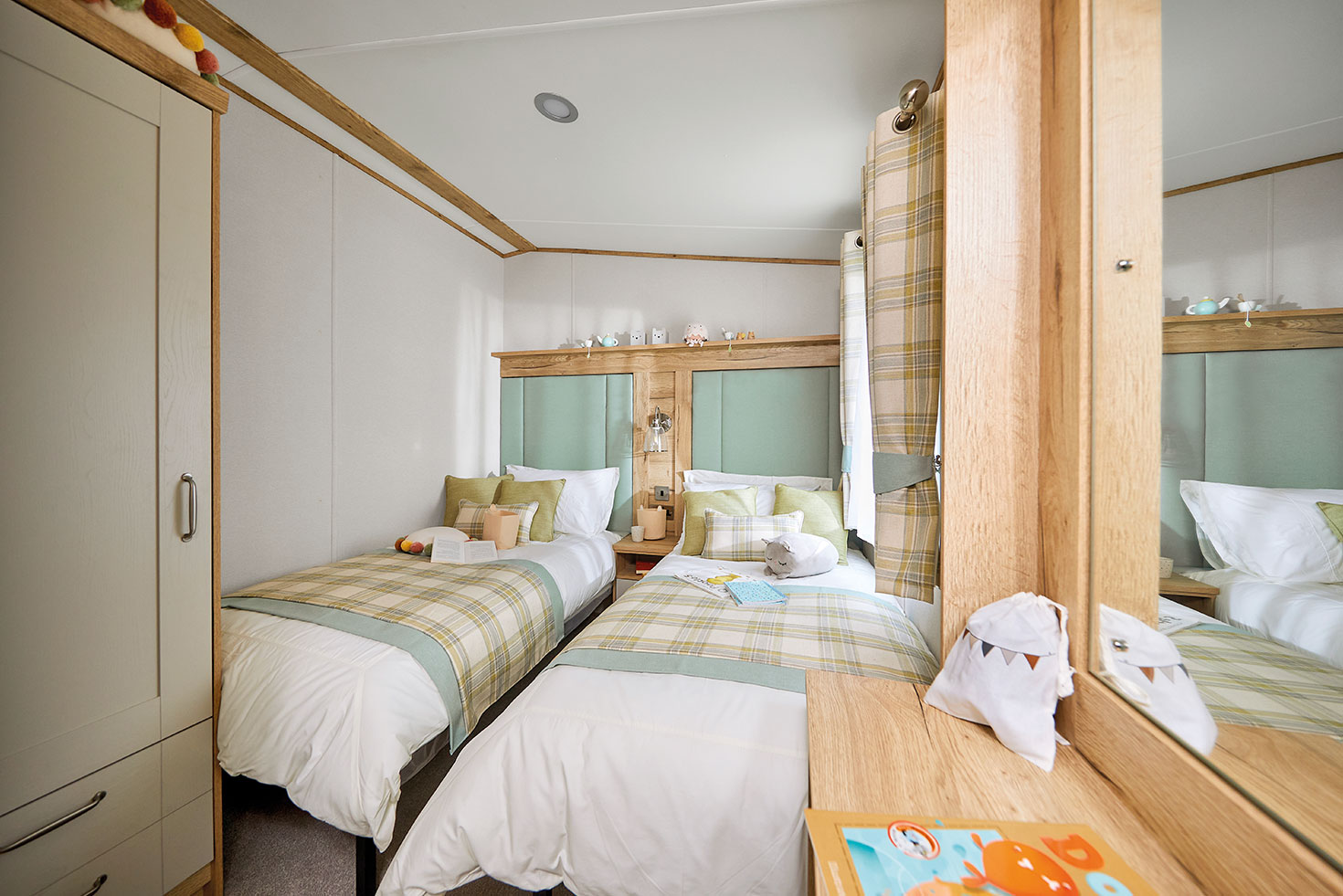 Luxuriously spacious the master bedroom has a king-sized double bed, with feature headboards and en-suite shower rooms. The twin bedroom has two full-sized (3ft) single beds. The homes also include a well-appointed main shower room with shower cubicle, toilet and washbasin.