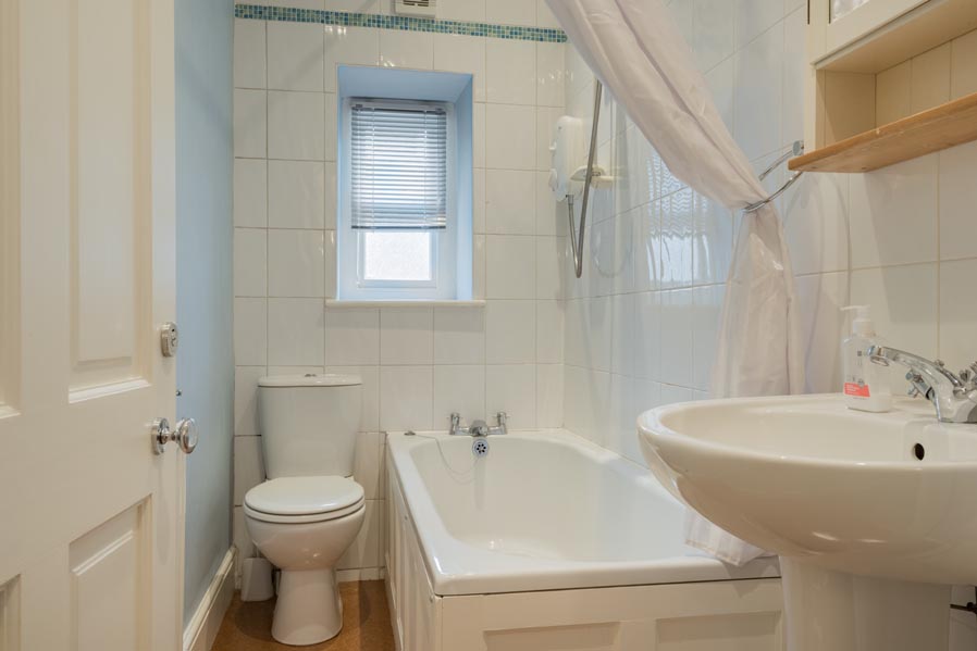 Family bathroom: The bathroom has a toilet, wash hand basin and bath with shower over.