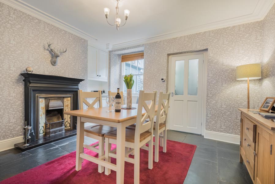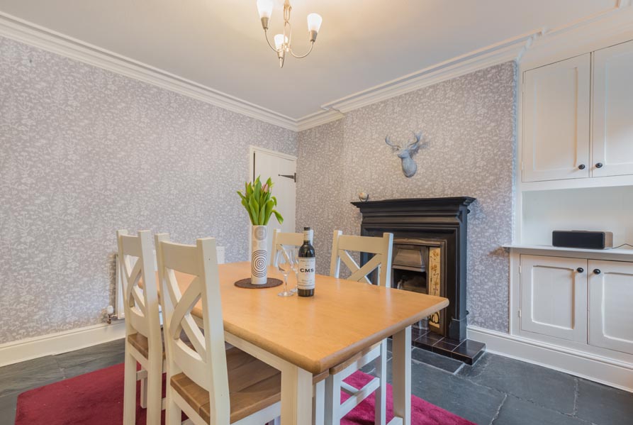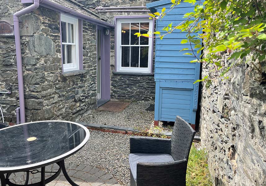 To the rear of the home, Rowan Cottage has its own courtyard garden complete with outdoor dining furniture.