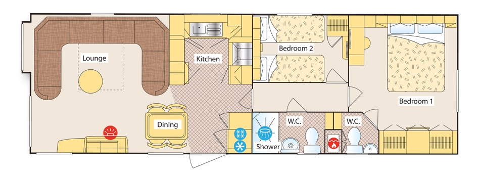 The ABI St David offers a warm and welcoming ‘home from home’ feel, with a tasteful French walnut and cream colour scheme complemented by polished chrome fittings throughout.