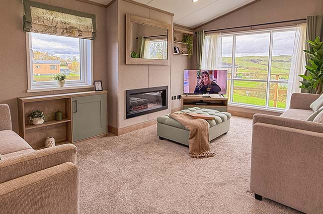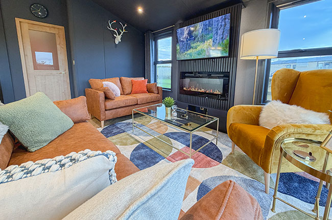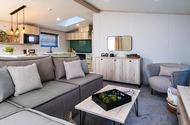 Sycamore Lodge is a spacious, farmhouse-chic retreat designed for both sociable living and peaceful relaxation. Its open-plan lounge features a large modular sofa, feature fireplace and stylish bar area - perfect for cosy nights in or relaxed gatherings.